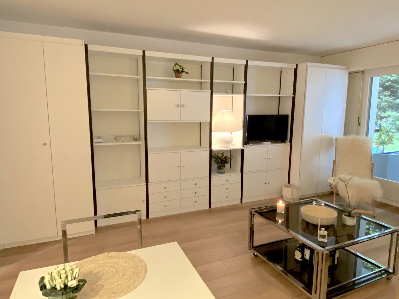 un vaste séjour avec armoires encastrées (3 gardes-robes sigle!)