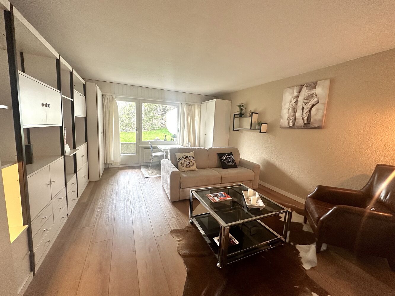 Magnifique joli studio de 35 m2 situé dans une petit résidence à la route des sommets de Crans non loin du centre saura vous séduire par sa position, son calme mais aussi par son volume. Le studio à été rénové avec goût en 2020 dans un style chalet moderne Idéal pour un petit pied à terre à Crans-Montana ou pour les résidents travaillant sans voiture.