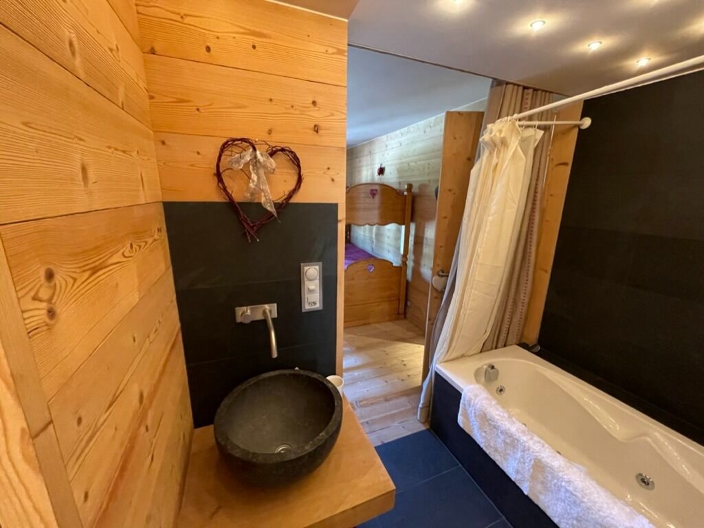 - 1 grande chambre avec salle de bain/jacuzzi et wc attenants